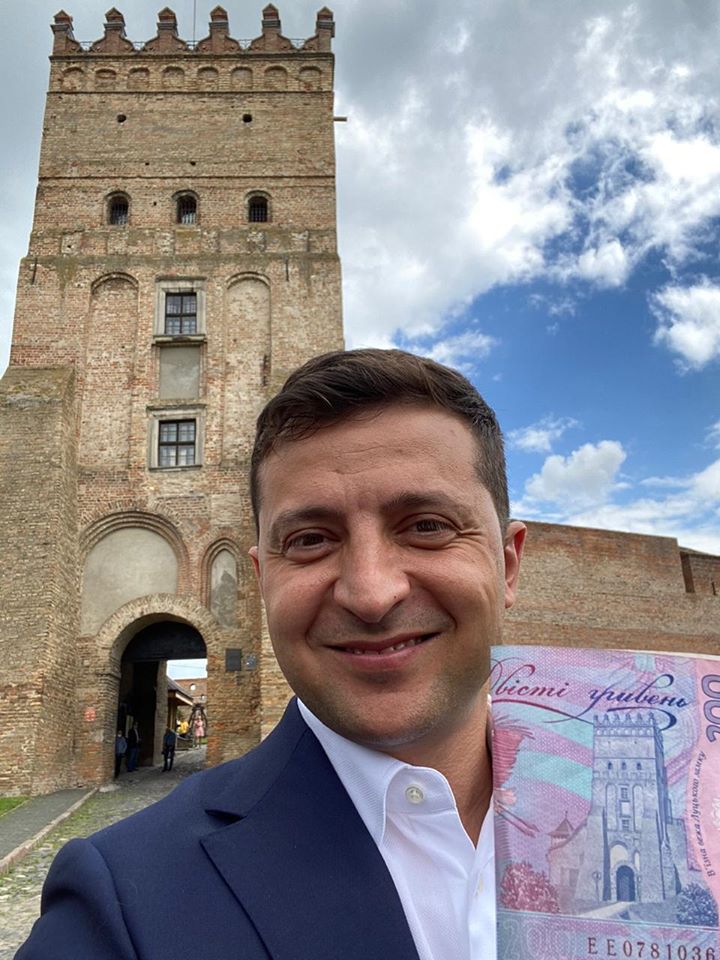 Впоследствии Владимир Зеленский посетил и сам областной центр. Именно там фоне замка Любарта он сделал известное Селфи с двохсотгривневою купюрой, которое опубликовал на своей социальной страничке в сети Facebook.