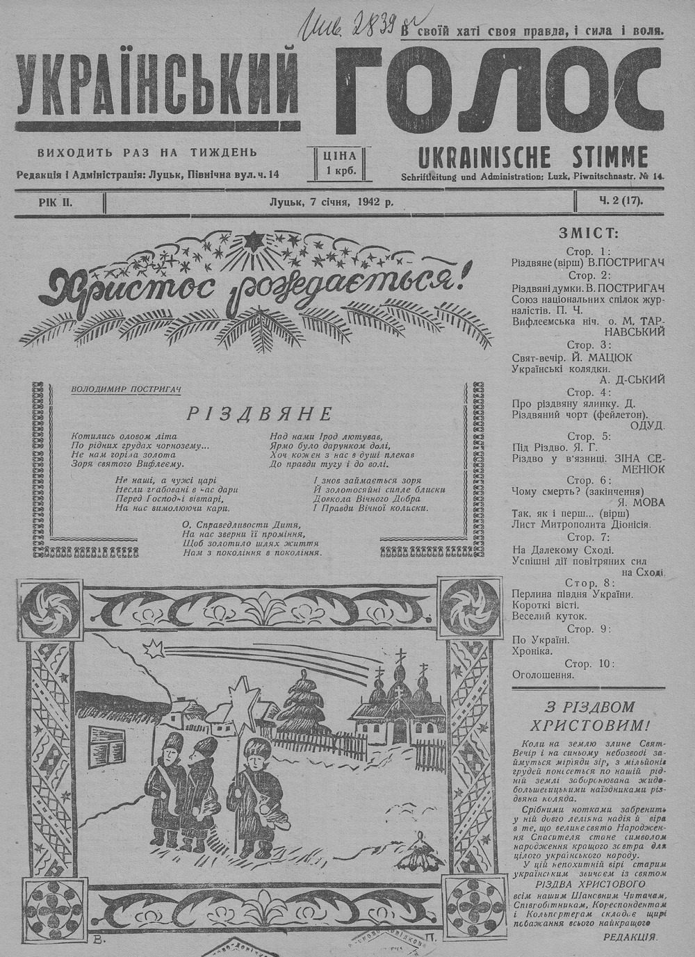 Наприкінці січня 1942 року Луцьк охопила епідемія висипного тифу. Євгеном Тиравським, посадником міста, було зроблене оголошення про карантинні обмеження, а саме: