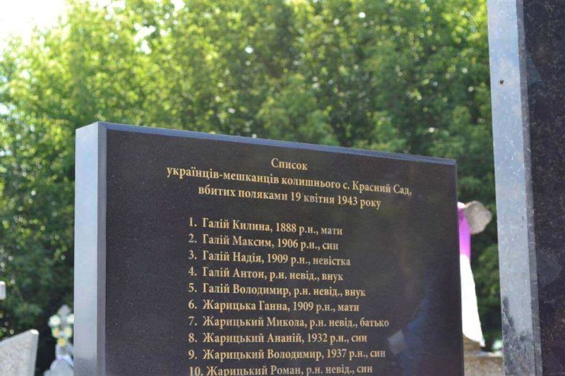 У 2012 році на цвинтарі, у місці поховання мешканців Красного Саду, встановили пам’ятник з поіменним списком українців, які були знищені у селі поляками.