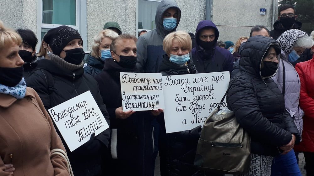 Другого листопада у Володимирі-Волинському люди зібралися на протест: підприємці вимагали у влади підтримки за складних умов червоної зони карантину, пише “yes-lutsk.com.ua“.